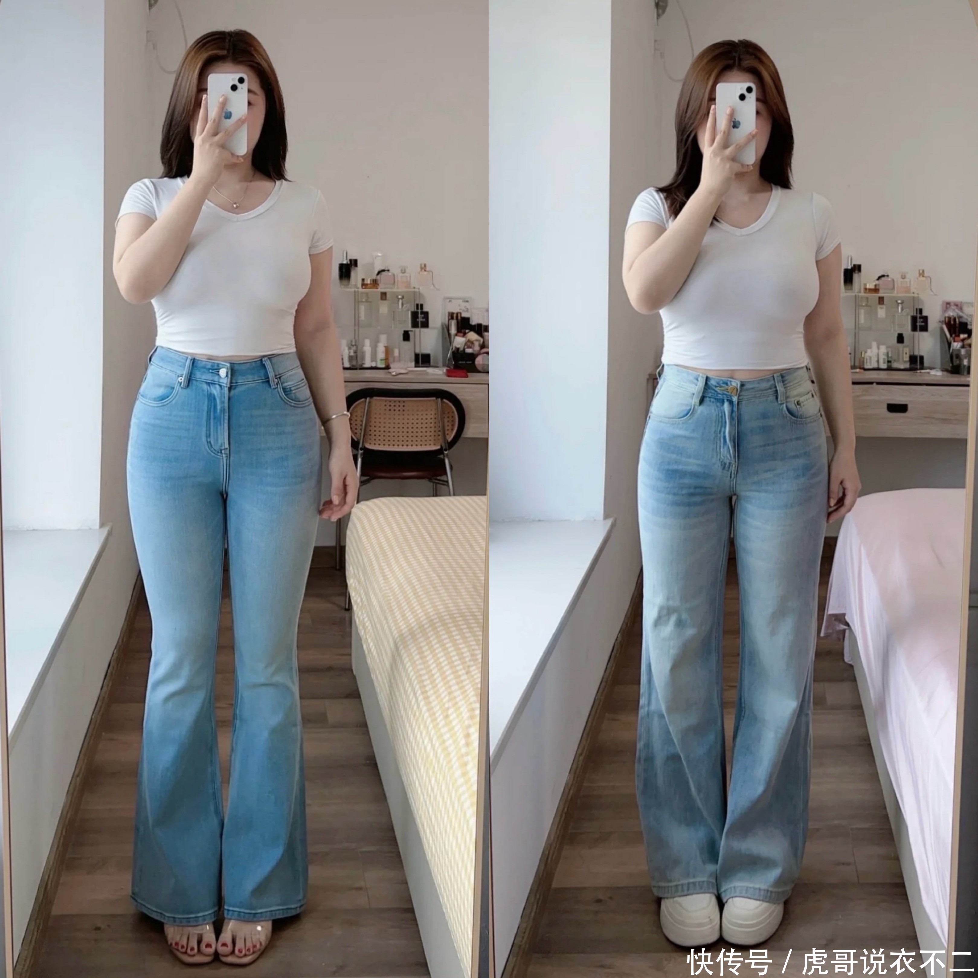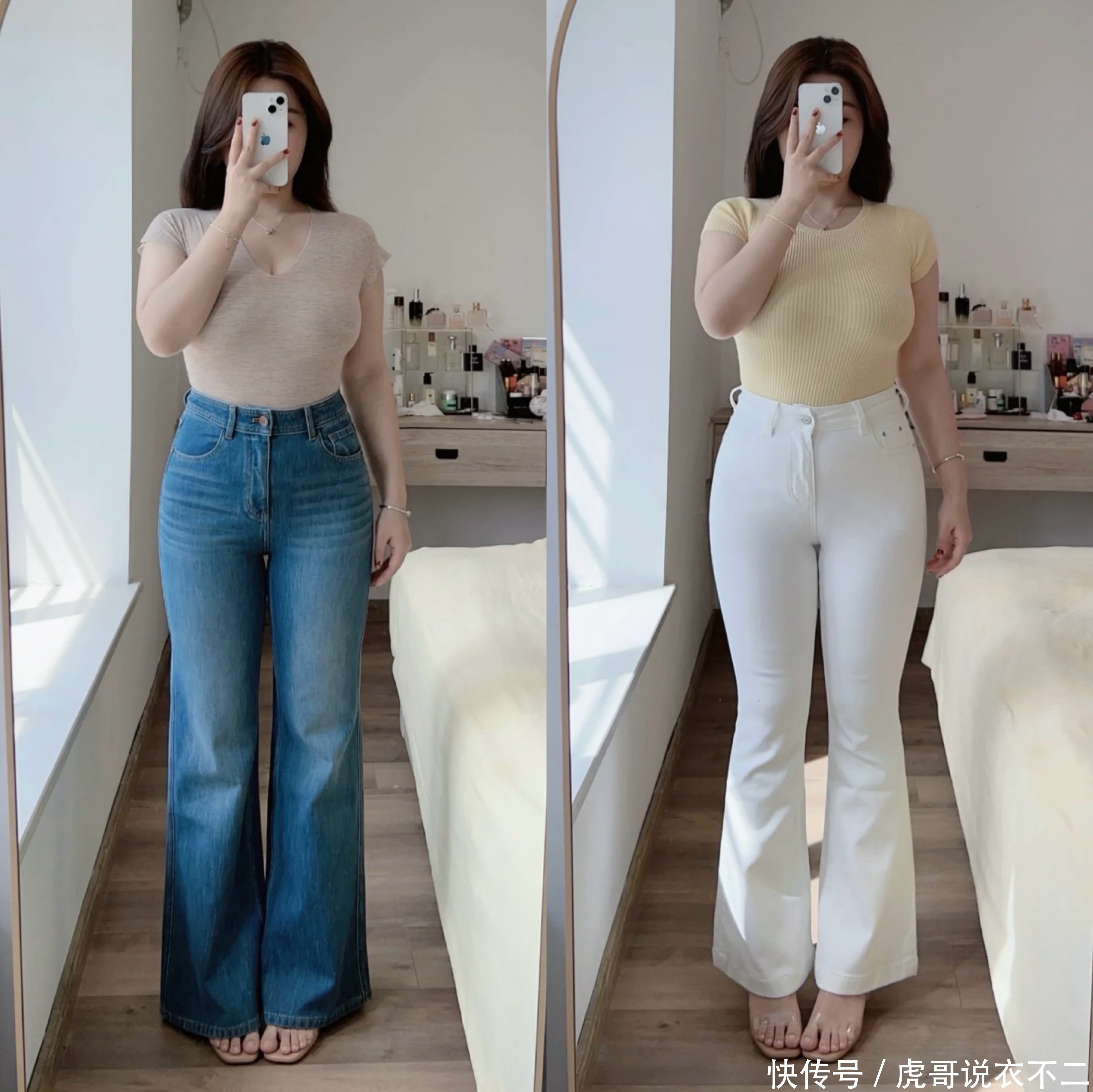 微喇裤可谓是微胖身材的救星,大部分微胖身材的女生无外乎苹果型和梨形身材两种,而这两种身材的唯一共同点就是臀部偏大,微喇裤的设计正好弥补了这一缺点,大腿修身的版型,小腿宽松的设计,更容易凸显身材曲线感。