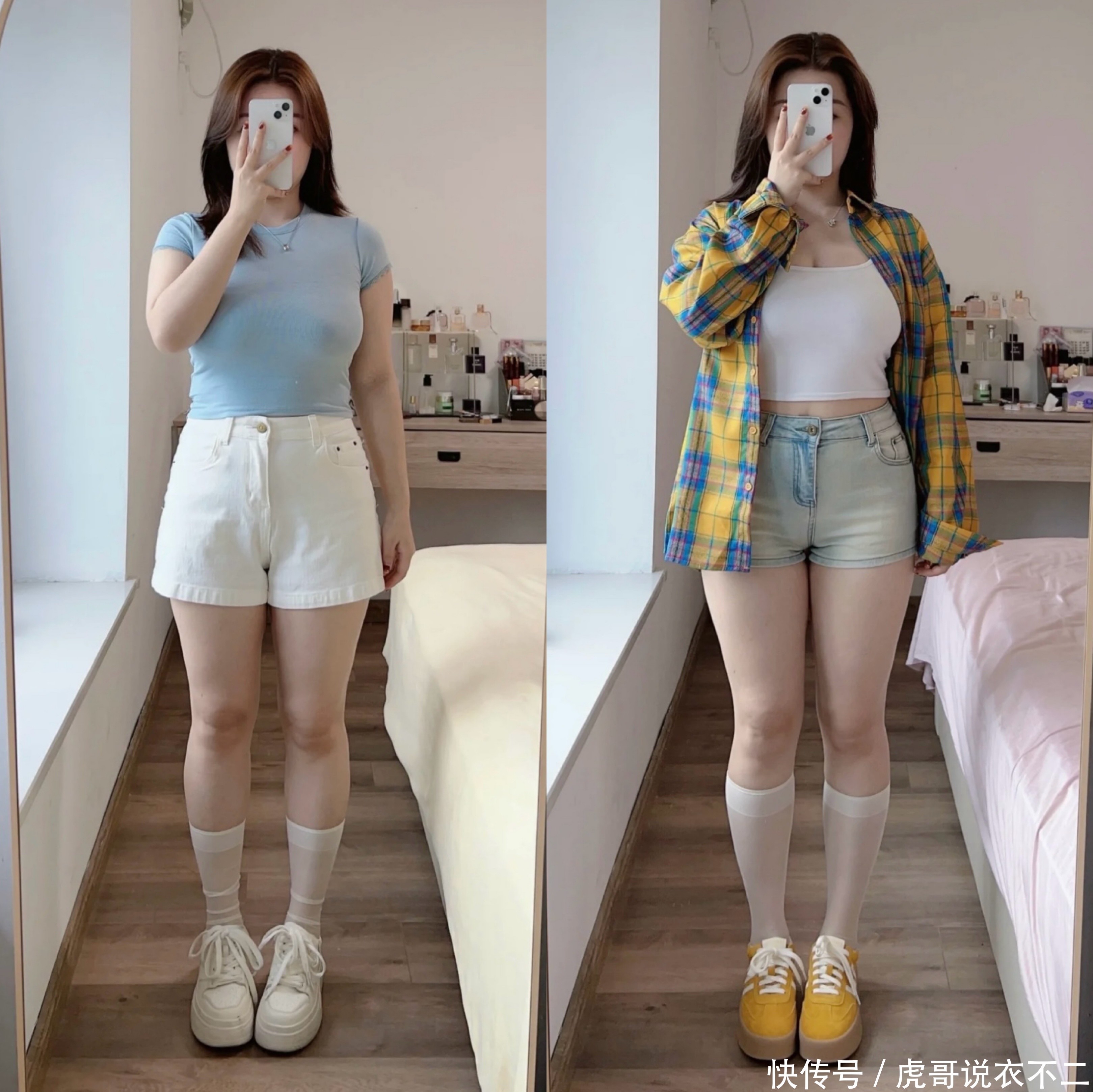 很多微胖的女生夏天都不敢尝试短裤,其实只要款式搭配选对了,胖女生穿短裤也很好看,首先推荐A字版短裤,但版型切勿太过宽松,容易显得拖沓不说,反而更容易显胖,选择恰到好处的A字版短裤,视觉显瘦效果会更好。